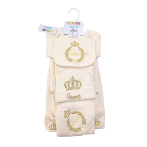 Elevate your little prince or princess's early experiences with our Prince & Princess Welcome Starter Set. Featuring 11 essential items, meticulously chosen to encompass all the necessities for your bundle of joy, this set offers unparalleled comfort, style, and convenience. From cozy clothing and soft blankets to versatile bibs and convenient accessories, every item is designed to pamper your baby and make your parenting experience as seamless as possible. Embrace the enchanting world of parenthood with our thoughtfully curated starter set.