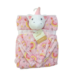 AC004 Imported Baby Blanket With Plush Toy & Handkerchief