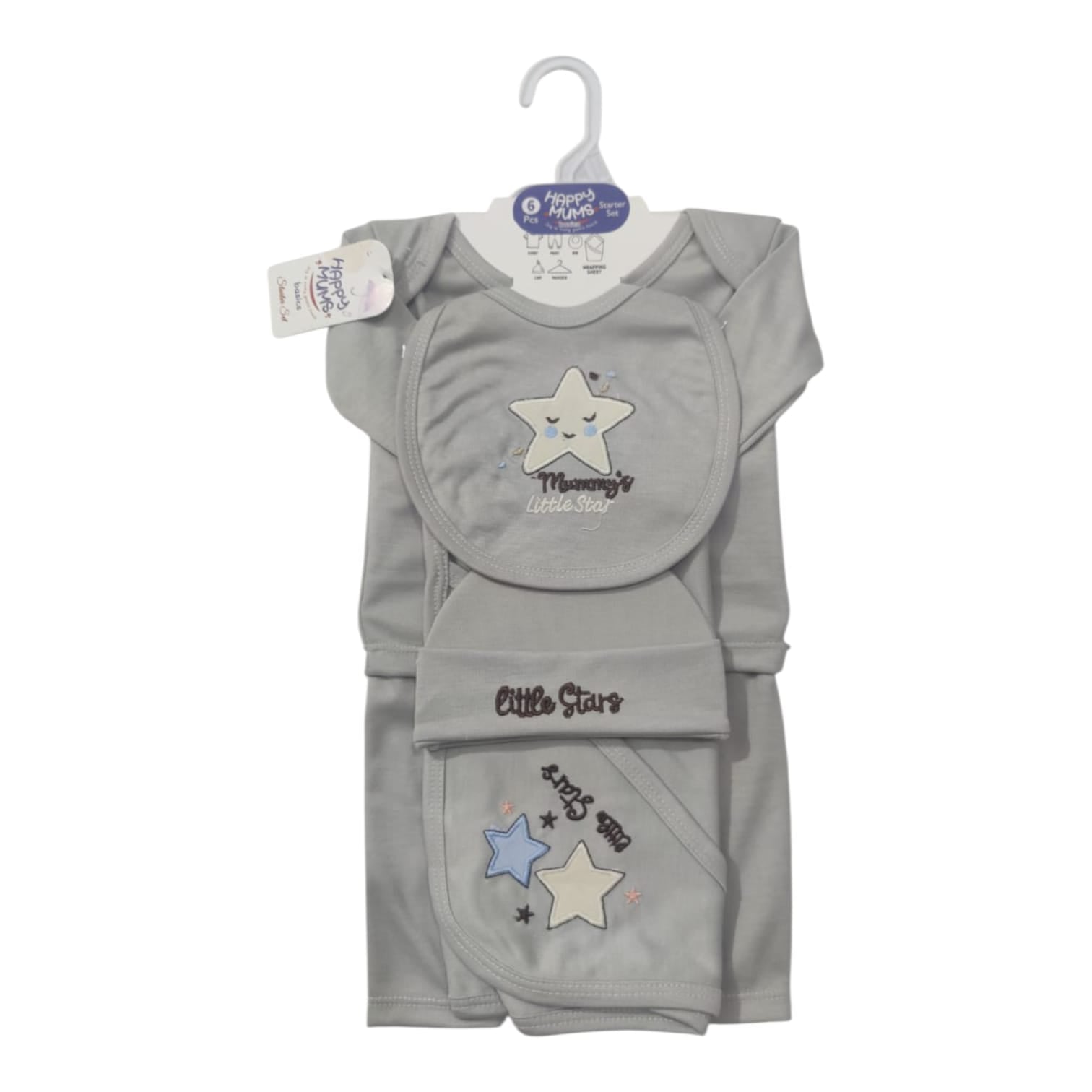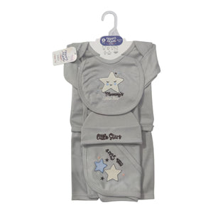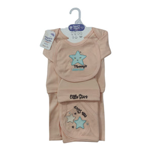 Introducing our Newborn Baby 06-Piece Starter Set, the perfect ensemble to welcome your little one into the world. This set includes essential items such as shirts, pants, wrapping sheets, hats, face towels, mittens, booties, and bibs, ensuring comfort and style for your newborn from day one.